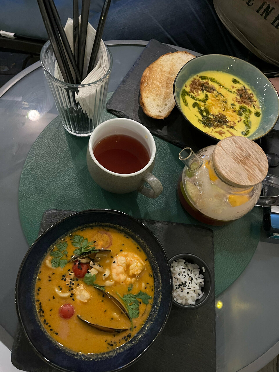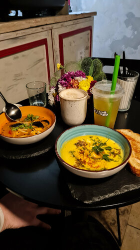 Очень понравилось заведение! Атмосфера уютная и приятная, очень вкусный том ям. Особенно хочу поблагодарить бариста Соню за вкусный кофе и отличное обслуживание. Огромное спасибо ей за профессионализм и доброжелательность!